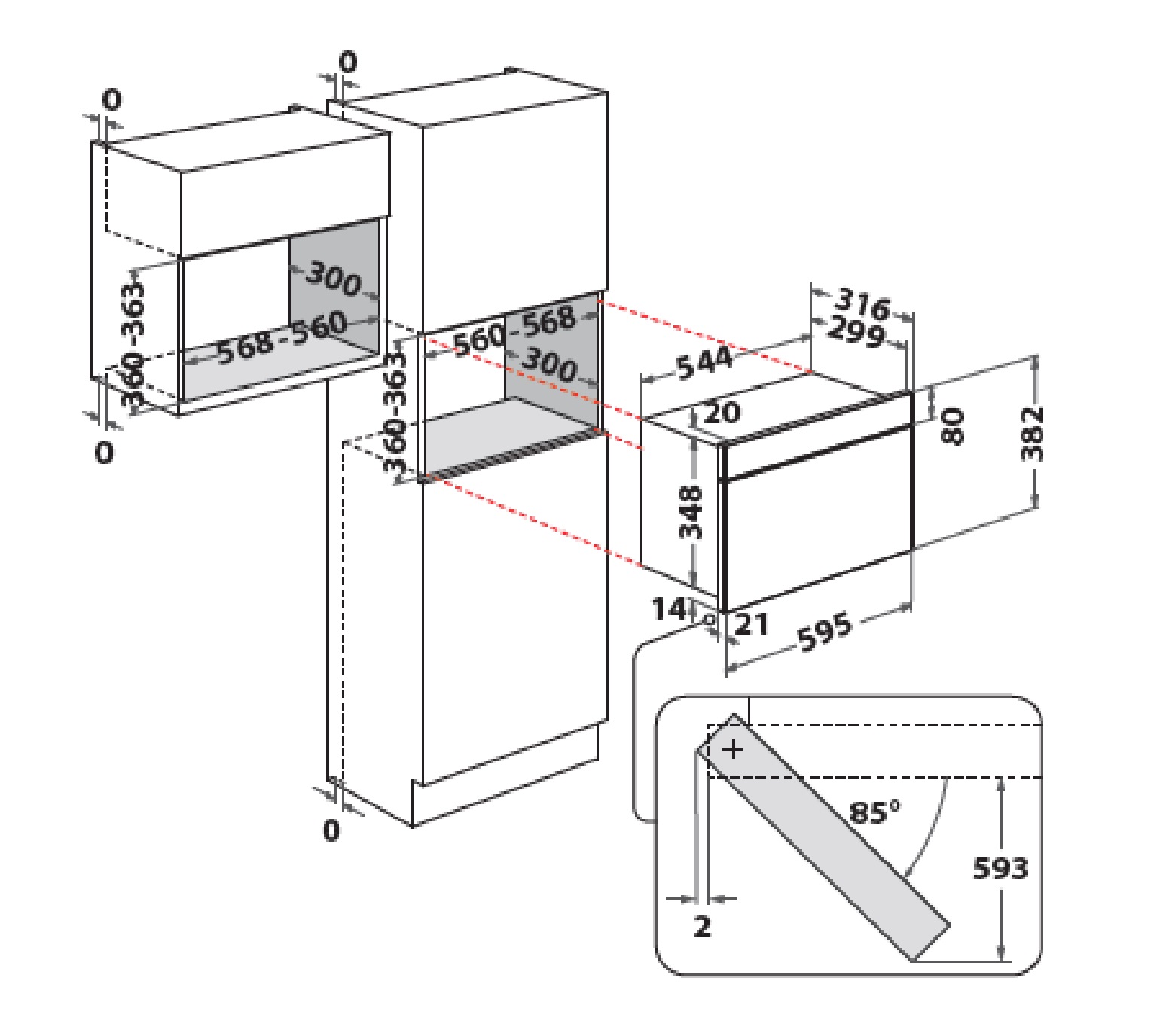Dimensioni vano per l'incasso (AxLxP):360x556x300 mm.