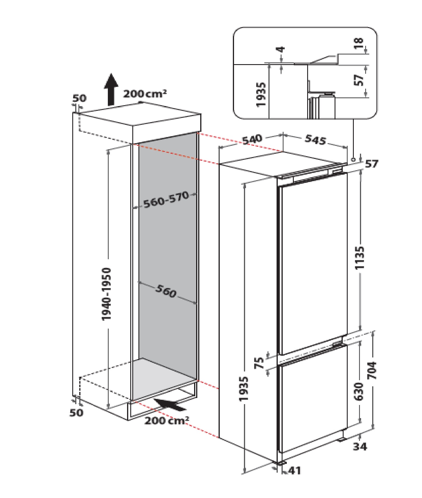 Whirlpool WHC20D023B1 SF Frigorifero combinato da incasso.