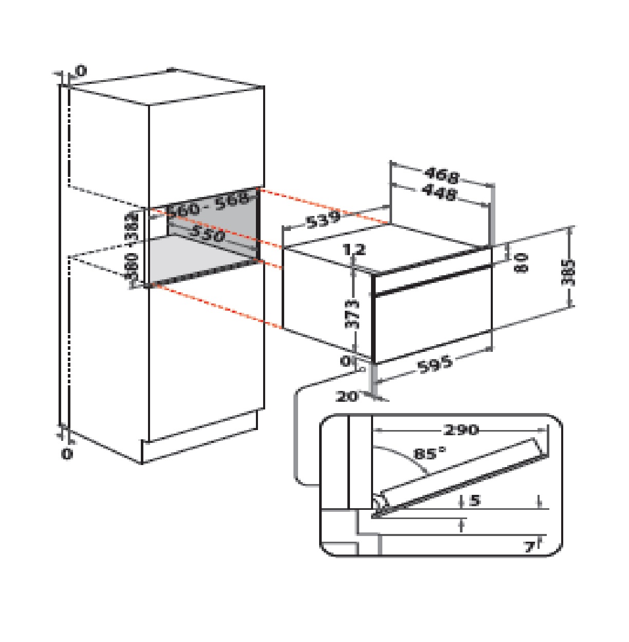 Dimensioni vano per l'incasso (AxLxP):380x556x550 mm.