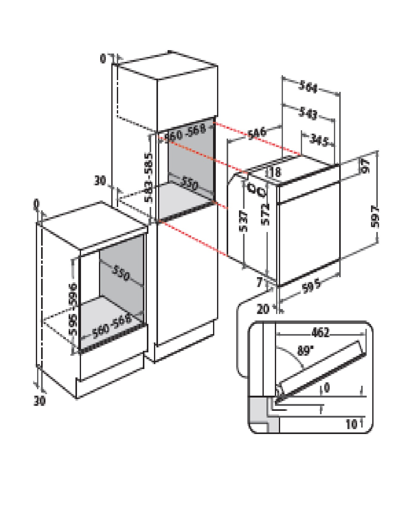 65 kWh  Superficie di cottura: 1200 cm2  Temperatura massima cottura: 310°C  Timer inizio/fine cottura  Potenza massima nominale regolabile: 3450 W  Potenza grill: 2450 W  Ventilazione di sicurezza radiale  Sicurezza bambini (blocco comandi)  Porta sicura raffreddata  Tensione: 220-240 V  Corrente: 16 A  Frequenza: 50 Hz DIMENSIONI  Dimensioni (AxLxP): 597x595x564 mm  Dimensioni vano per l'incasso (AxLxP): 583x560x550 mm  Dimensioni del vano per l'incasso (AxLxP): 585x560x550 mm  Dimensioni prodotto imballato (AxLxP): 690x635x650 mm